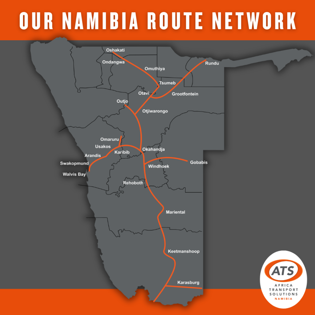 ATS (African Transport Solutions) is proud to announce the addition of Namibia as a direct route within our growing regional transport network. This expansion strengthens our footprint across Southern Africa and enhances our ability to provide reliable, efficient cross-border logistics solutions. With a dedicated route running through key Namibian hubs including Windhoek, Walvis Bay, Swakopmund, Otjiwarongo, Grootfontein, Rundu, Keetmanshoop and Karasburg, ATS ensures seamless connectivity between major commercial centres and trade corridors.